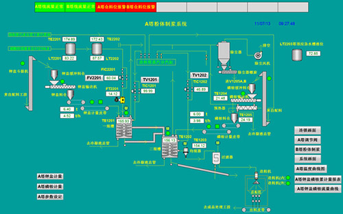我們采用德國Siemens,美國AB和法國Schneider等品牌PLC等為硬件平臺,利用各種組態(tài)編程軟件,給用戶提供整個生產過程的監(jiān)控系統(tǒng),采集現(xiàn)場的各種信號溫度,流量,壓力,液位、電流等模擬量信號和各設備狀態(tài)量信號 直觀的反映在中央控制室(操作員站和工程師站)的屏幕上,對現(xiàn)場實施順序控制、聯(lián)鎖控制、邏輯控制及復雜的專家控制,操作員可在屏幕上修改各種參數,可顯示各設備的工作狀態(tài),各工藝點量程值、報警值,提供歷史趨勢分析和直觀的棒狀圖,可查閱可存儲數據,形成報表并完成打印,并有掉電保護功能。系統(tǒng)擴展性好,可靠性高,我們已成功地應用在化工、冶金、建材、水泥、環(huán)保等行業(yè)。針對用戶的工藝情況我們不僅提供優(yōu)化的控制方案,同時還提供系統(tǒng)編程,硬件組合,現(xiàn)場安裝,操作員培訓和工程師培訓等一整套服務。